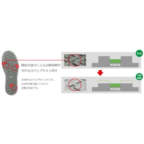 カタログ品番:NHF-600-GN-26.0 特長:●コンポジットミッドソールがふわふわな履き心地を実現しました。●跳ねるようなクッション性でスムーズな足運びと疲労軽減を実現しました。●立ち作業に最適です。●ダイヤモンド型の底意匠により全方向へのグリップ力がさらに高くなりました。●塗り床・グレーチング床・ステンレス床・タイル床・細かい凸凹床などが混在する環境でも高い耐滑性能を発揮します。●樹脂製の軽い先芯を使用しています。●JSAA認定A種合格の性能です。 仕様:●寸法(cm):26.0●色:グリーン●足幅サイズ:EEE●規格:JSAA A種●耐圧迫荷重(kN):10±0.1●JSAA認定 A種人工皮革製プロスニーカー/踵衝撃吸収/耐滑 材質/仕上:●先芯:ワイド樹脂●甲被:人工皮革●靴底:高反発EVA/合成ゴム●中敷:EVAインソール(抗菌・防臭)