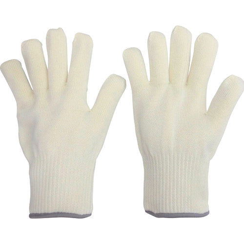 カタログ品番:M-AR101-L 特長:●外側に耐熱性・難燃性のあるアラミド繊維、内側には吸湿性のあるコットンの2層構造で熱を伝えにくくかつ蒸れにくい手袋です。●柔らかく柔軟性に優れます。●手の小さな方も使用になれるよう S・M・Lサイズをご用意しました。●左右兼用で使えて経済的です。 用途:●短時間の過熱物の持ち運び等。 仕様:●色:黄白色●サイズ:L●全長(cm):27.0●手のひら周り(cm):24.0●中指長さ(cm):8.8●厚さ(mm):約4●ゲージ数:外側:10ゲージ、内側:7ゲージ●素材耐熱温度(℃):370●リストカラー:グレー 材質/仕上:●外側:100%メタ系アラミド●内側:綿、ナイロン●袖口部分:ポリエステル、ゴム 注意:●アラミド繊維の耐熱温度は370℃です。●370℃を超えても溶解しませんが、徐々に炭化が進み、強度が落ちる可能性があります。●ご使用前に繊維の劣化の有無をご確認ください。●本製品は、耐熱素材を使用しておりますが、火傷等を完全に防止する物ではありません。