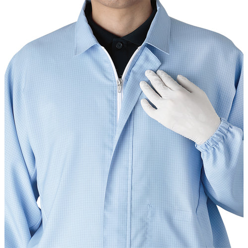 カタログ品番:VEYG201W-3L 特長:●袖間抵抗<1.0×10[[の9乗]]Ωで優れた防塵性を持っています。●生地はソフトな風合いで、軽い着心地を実感して頂けます。●「新立体構造」により、腕の上げ下ろしが楽に行えます。 仕様:●色:ホワイト●サイズ:3L●着丈(cm):70●適合胸囲(cm):126●胸回り(cm):126●裄丈(cm):87●IEC 61340-5-1 対応 材質/仕上:●ポリエステル100%(導電糸4mmグリッド) 注意:●クリーンパックではありません。