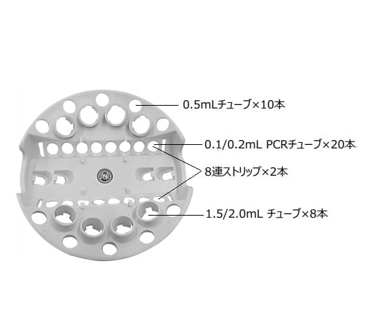 最大処理量:1.5/2.0mLチューブ×8本、0.5mL/0.6mLチューブ×10本、0.1/0.2mLPCR チューブ×20本、8連ストリップ×2本