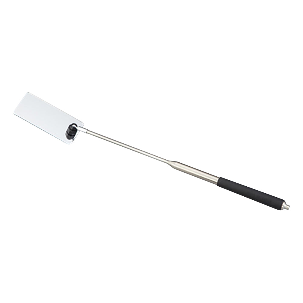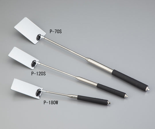 軽く割れにくい、アクリルミラーを使用しています。材質:ミラー部/アクリルミラー、シャフト部/ステンレス管 重量:120g 型番:P-120S ミラー部(mm):50×100 全長(mm):230~1180
