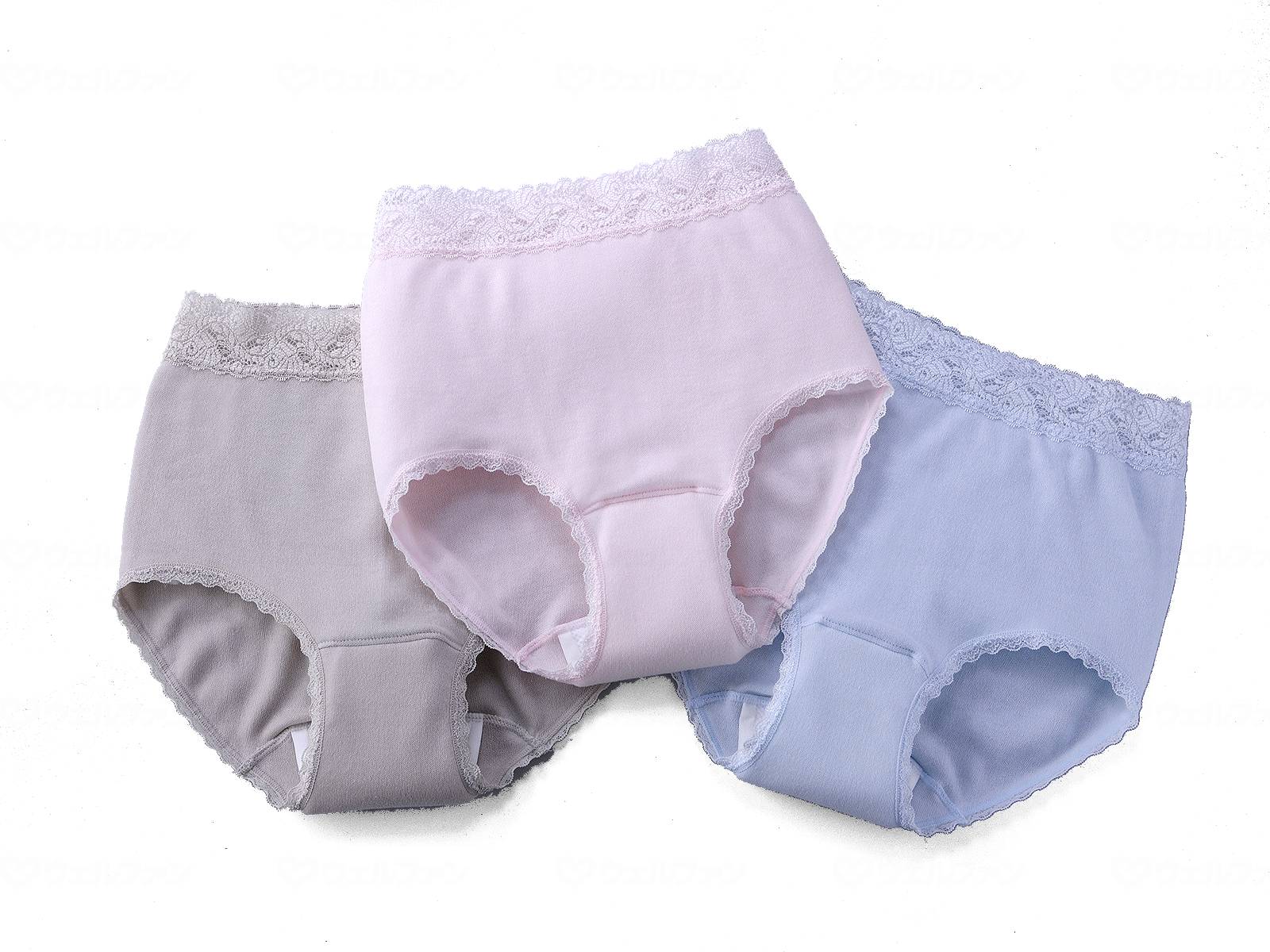 ミルクヴェッチ綿100%レース付ソフトガーゼ失禁ショーツ3色組 M