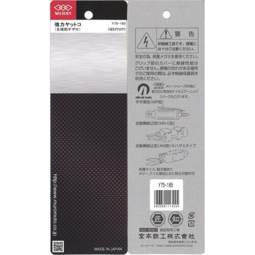 カタログ品番:Y75-185 特長:●サイズが大きめなので頑丈かつ強力です。 用途:●つかむ・ねじる・曲げる・引っ張り作業に。 仕様:●全長(mm):185●つかみ長さ(mm):32●先端形状:標準●ソフトカバー付●先端部ギザ付 材質/仕上:●特殊工具鋼