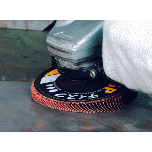 カタログ品番:GP100SA4 特長:●研磨布が基盤から立っているため、弾性があり、加工物によく馴染みます。●基盤の直径が研磨布の外形より小さいため、角の研磨もでき、二面同時研磨もできます。●発熱性がなく、被研磨物を変質させません。 用途:●メッキ前の研磨に、金属表面の研磨。●サビ落とし、バリ取り。●木工、プラスチックの研磨。 仕様:●粒度(#):60●外径(mm):100●羽根長さ(mm):15●穴径(mm):15●最高使用回転数(rpm):13000●羽根枚数(枚):80●最高使用周速度:68m/s(4080m/min)●アランダム砥粒 材質/仕上:●アルミナ砥材