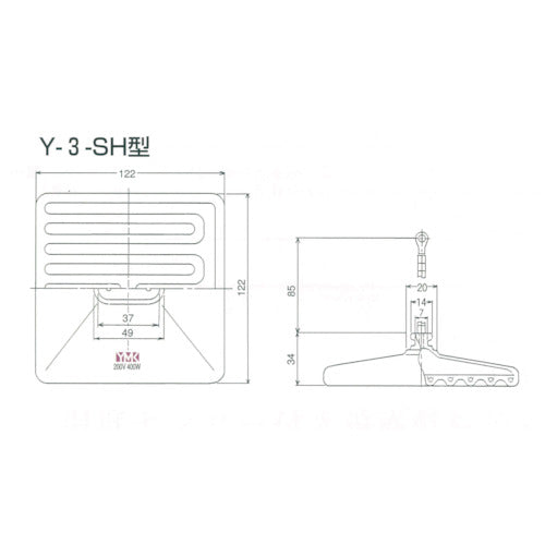 カタログ品番:Y-3SH 200V-400W(B) 特長:●高効率面状放射加熱で、短時間で均一な加熱・乾燥が可能です。●急熱・急冷による破壊の恐れがありません。●経年劣化による放射率の低下がありません。●他社メーカー品との互換性があります。●黒色は白色と比べ放射率に優れ、効率的な加熱が可能です。●ヒーター内部が空洞になっており、空気が断熱材の役割をするため、ヒーター背面へ逃げる熱が少なく、ヒーター前面への放射効率がアップします。 用途:●樹脂シート成形、塗装乾燥、焼き付け用。 仕様:●電源(V):200●定格電流(A):2.0●容量(kW):0.4●幅(mm):122●長さ(mm):122●色:黒●リード線長さ(mm):85●電源:200V●温度安定時間:4〜6分●リード線長さ:85mm 材質/仕上:●耐熱セラミック セット内容/付属品:●取付金具1個 注意:●直接水が掛かる環境では使用しないでください。●輻射ヒーターなため、加熱対象物に直接接触させないでください。●割れる恐れがあるため、過度な衝撃・振動を与えないでください。