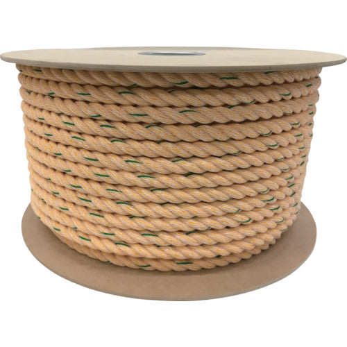 カタログ品番:PRK-16 特長:●強力なポリエチレンの特性を生かし作業性をアップさせる為にエステル糸を混ぜ、軽量・強力・作業性が良いロープです。 用途:●一般作業などの各種結束。 仕様:●色:黄●線径(mm):16●長さ(m):100●包装形態:ドラム巻 材質/仕上:●ポリエチレン(PE)、ポリエステル混撚