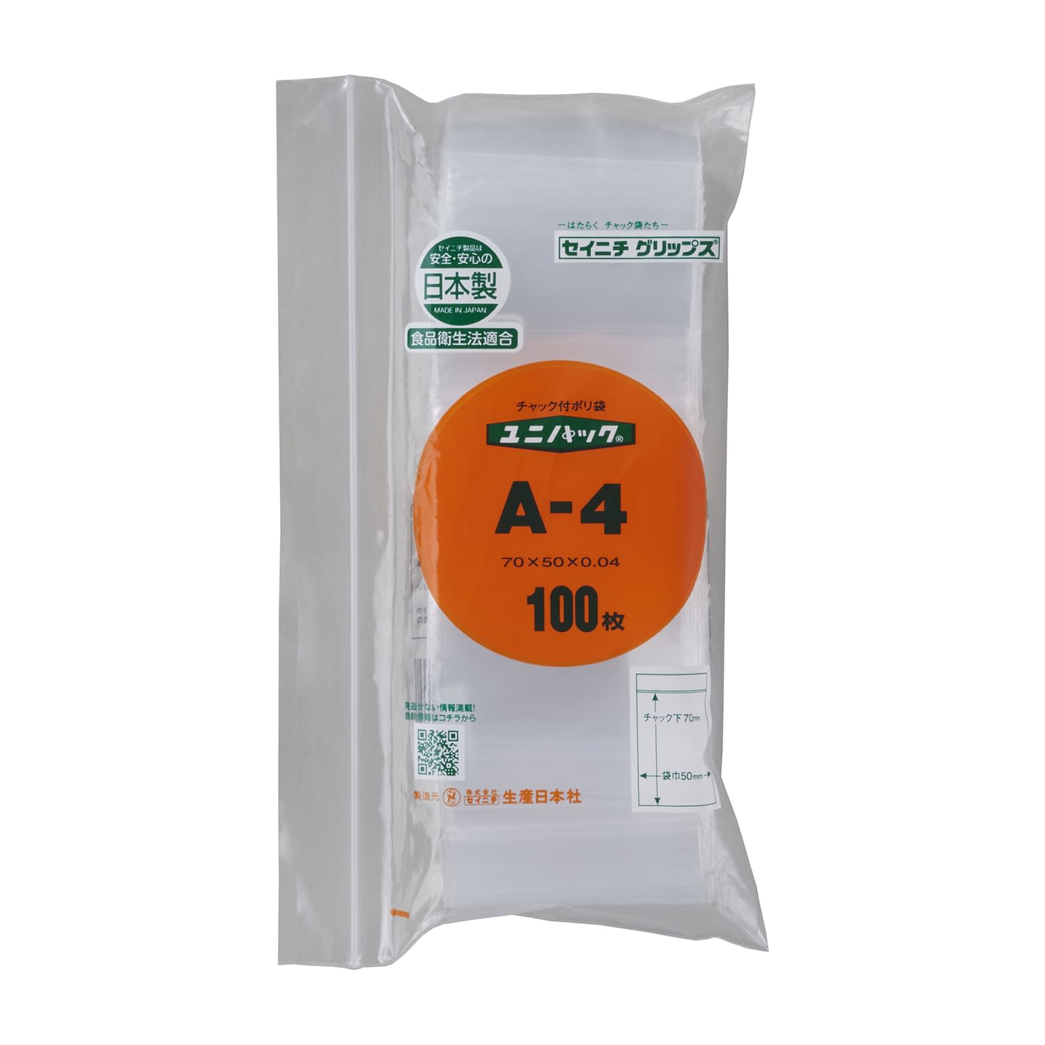 ユニパック チャック付ポリ袋 25-3693-00 セイニチ A-4(70X50MM)100マイ
