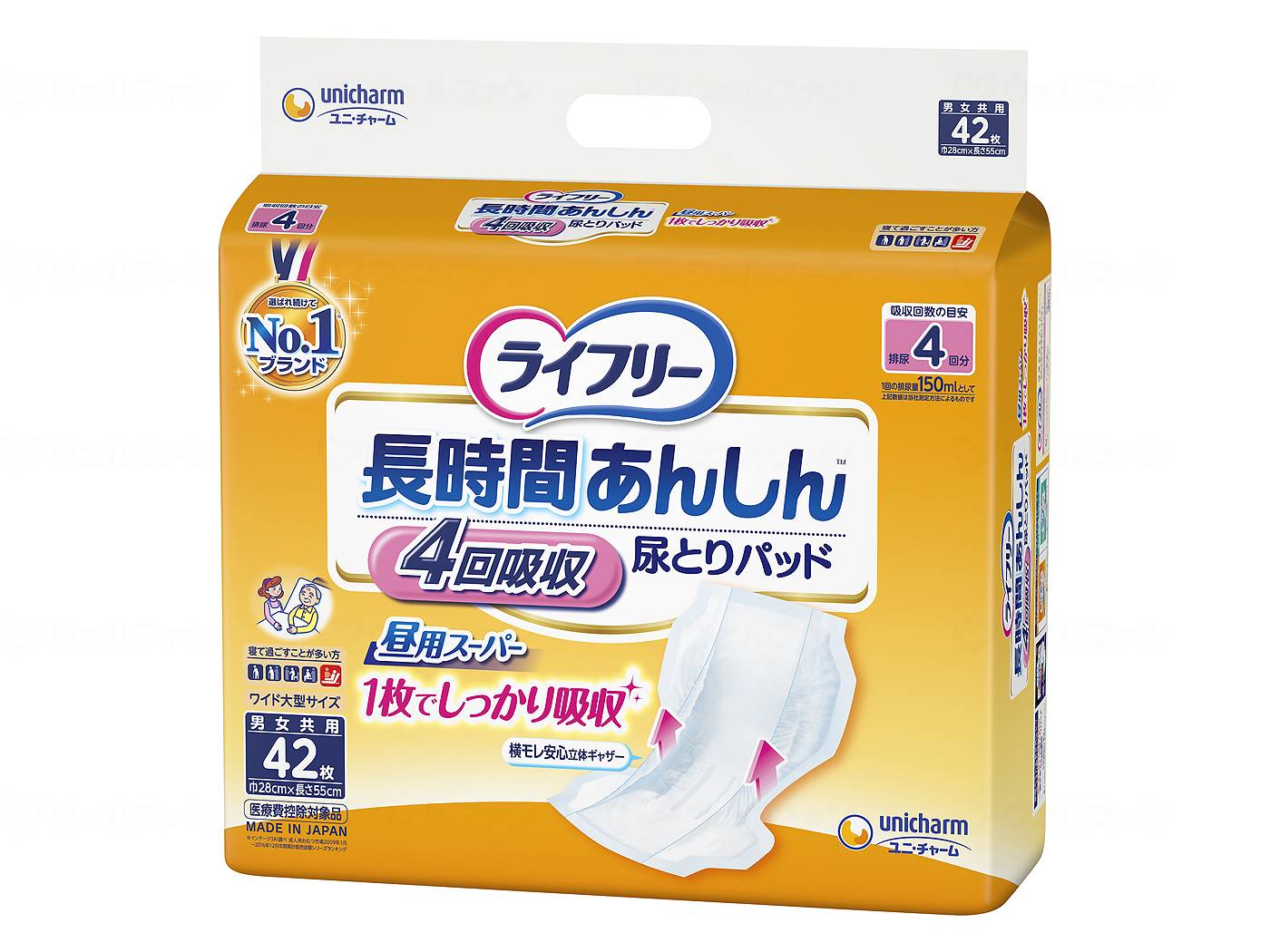 ○吸収回数の目安:排尿4回分(約600cc) 42枚/3袋