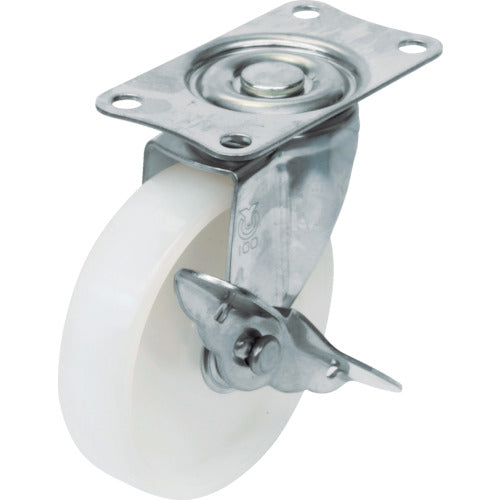 ユーエイ プレート式 自在 ステンレスキャスター ナイロン 車輪径50mm ストッパー付き Eタイプ SUS−E−S型 取付寸法56×28 SUS-E-50NS 1 個
