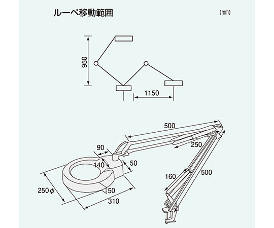 ルーペ移項範囲:水平方向/~1150mm、垂直方向/~950mm