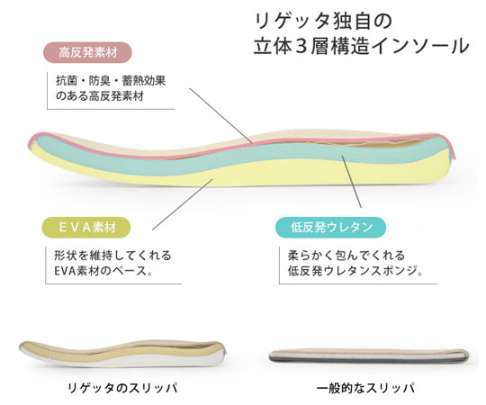 リゲッパの保湿効果のあるフラノ生地を使用した秋冬バージョン「フーユー」 リゲッタ独自の立体三層構造インソールを使用しており、クッション性に優れたふんわり柔らかな履き心地。片足の重さは約90gの軽さ。インソールはふわふわで柔らかく抗菌防臭、蓄熱効果があり、冬でも足元ポカポカです。サイズXL(25.0~26.5) 甲材:ポリエステル 底:EVA 甲幅15cm 底幅10cm ワイズ25.0cm ストーム2cm ヒール2.5cm 重量120g(片足) 中国製 梱包サイズ 幅260mm×奥行330mm×高さ10mm