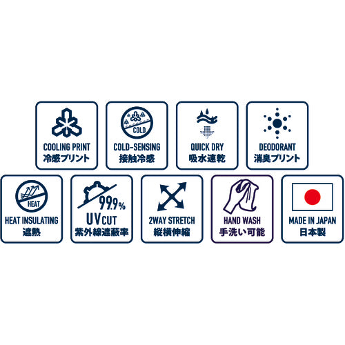 カタログ品番:FT-25153602 特長:●接触冷感生地のエチケットマスクです。●水との化学反応で熱を奪う特性があるキシリトール・エリスリトールの特殊冷感プリントと消臭イオンプリントを内側に施しているため、汗や湿気を利用してマスク生地の温度を下げ、嫌な臭いを消臭します。●吸水速乾性、紫外線カット、通気性のよい素材を使用しているため、夏場着用時でも快適性を保ちます。●耐久度のある特殊冷感プリントをすることで、洗濯耐久性を実現しました。●手洗いで40〜50回程度使用可能です。●水で湿らせうちわなどで風を与えると、より冷たさを感じやすくなります。 用途:●夏場などの飛沫感染防止抑制を目的としたエチケット用に。 仕様:●サイズ:XS●縦(mm):127●横(mm):155●構造:1層●接触冷感+消臭持続仕様●洗濯耐久目安:手洗いで約40〜50回程度 材質/仕上:●ポリエステル84%●ポリウレタン16% 注意:●飛沫感染防止抑制を目的としたエチケット用製品のため、ウィルス・有害な粉塵・ガス等が発生する場所やそれらを防ぐ目的での使用はできません。