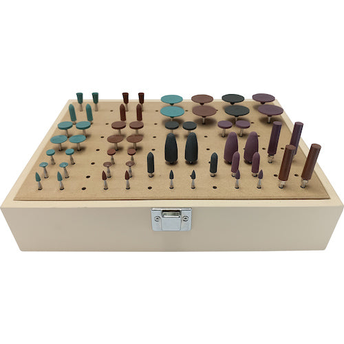 カタログ品番:R0011 特長:●軸径φ2.34の軸付シリコンゴム砥石をセットにしました。●特殊なシリコンフィラーを使用しているため研磨力、耐久性に優れています。 用途:●<R1011〜R1082>金合金・銀合金・パラジューム合金・貴金属合金の仕上げに適しています。●<R1111〜R1162>硬質合金鋼・工具鋼・炭素鋼・ステンレス・一般鋼材の仕上げに適しています。 仕様:●軸径(mm):2.34● 60本入り セット内容/付属品:●軸付シリコンゴム砥石:R1011、R1012、R1021、R1022、R1031、R1032、R1041、R1042、R1051、R1052、R1061、R1062、R1071、R1072、R1081、R1082、R1111、R1112、R1121、R1122、R1131、R1132、R1141、R1142、R1161、R1162、R1181、R1192(各2本)、M2201(4本)、TS-03(ケース1個)