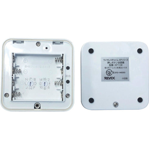 カタログ品番:XP10E 特長:●電波の飛距離は屋外見通し距離最大180m(屋内見通し最大90m)です。●簡単に取り付け可能です。●送信機・受信機とも増設可能です。●番号表示は01〜64番まで表示可能、送信機で表示番号消去可能(受信機XP1900ご利用時)です。●豊富な着信音や音声で知らせします(64音)。●送信機は防雨仕様で屋外軒下または多少の水がかかるところに設置可能です。●送信機の電池切れが受信機でもわかる、電池切れお知らせ機能があります。●256通りのIDコードで混信しません。●ワイヤレスナンバー表示呼び出しチャイム タッチセンサー送信機は押しボタンを押す力が無い方に便利です。 用途:●レストランや病院、介護施設などの呼び出しに。 仕様:●幅(mm):70●奥行(mm):27●高さ(mm):70●チャイム種類:消し機能付押しボタン●保護等級:IP55相当●品名:ナンバー消し機能付タッチセンサー送信機●送信器幅×奥行×高さ(mm):70×70×27●電源:DC6V:単4形アルカリ乾電池4本(別売)●電池寿命:約2年(1日10回送信、20°C時) ※電池寿命は使用環境や設定した曲の長さにより変わります。●電池切れ表示:送信ランプが青点滅“ピッピッ”音●電源スイッチ:なし●番号消し方法:押しボタンを約5秒長押しすると受信機のナンバークリア●送信周波数:315MHz帯●送信ランプ・音:送信時に青ランプが点灯(約4秒間)“ピッ”音/ナンバークリア時に緑ランプが点灯“ピピピピピ”音●選曲方法:送信機の選曲ボタン (送り)、(戻り)を押し、受信機で確認しながら選曲●使用エリア:屋内/屋外(防塵形・防噴流形(IP55相当)で屋外軒下または多少の雨や水のかかる場所でも使用可能)●使用温度範囲:-10〜45℃ 材質/仕上:●ABS樹脂 セット内容/付属品:●送信機1個●ネジ●リブ●IDコード切換用ミニドライバー