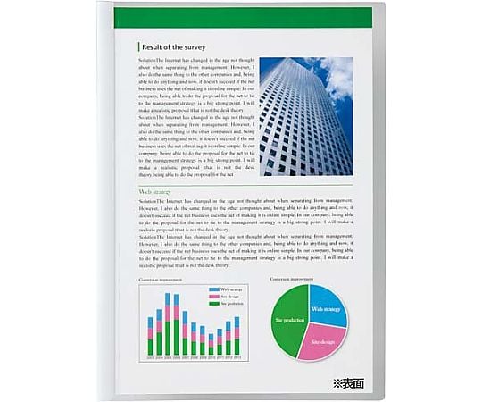 PET製は、印刷インキによるカールが起きにくく高透明なので表紙が際立ちます。サイズ:A4タテ