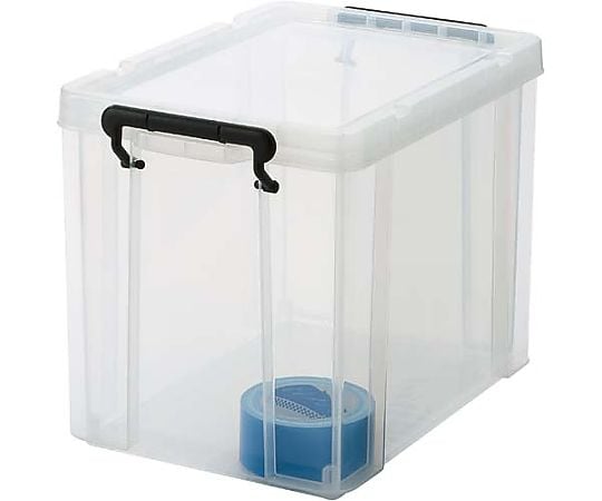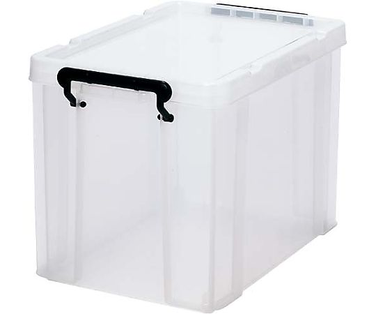 ロック式のフタ付きで丈夫な樹脂製ボックス。
