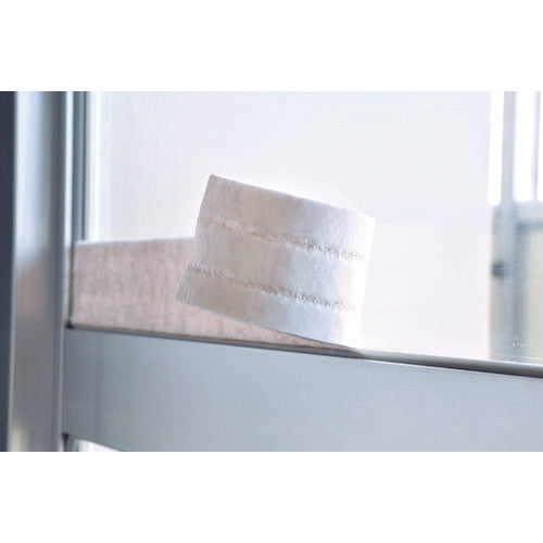 カタログ品番:KPM-202 特長:●自由自在に貼ってはがせます。●自由にカットできます。●繰り返し洗えて清潔です。 用途:●結露取りに。 仕様:●色:シルバー●幅(mm):40●長さ(mm):910●厚さ(mm):4●長さ(m):0.91 材質/仕上:●表面:ポリエステル 裏面:アクリル樹脂 注意:●アミ入りガラス、ペアガラス、合わせガラスなどの特殊ガラス、表面がザラザラしたガラスには貼れません。