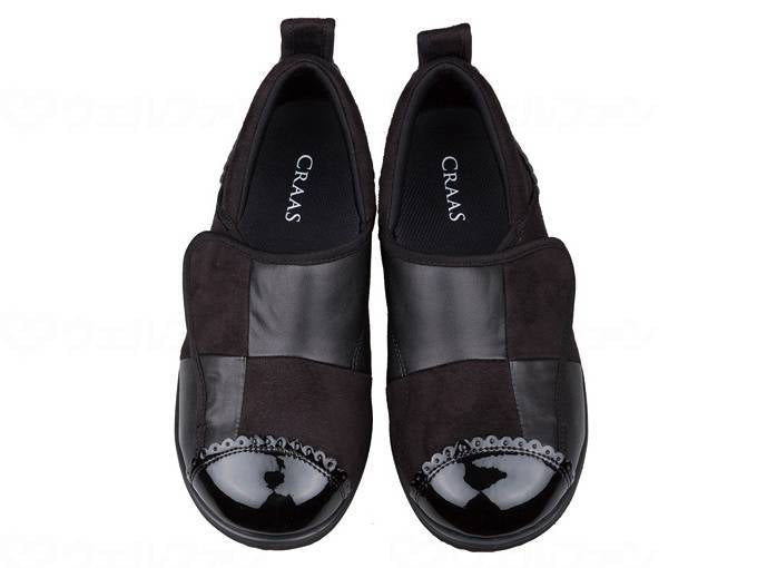 メーカー品番:「15SCRSLJ105S」 サイズ・重量 重量(Sサイズ片足分)約194g コメント 履きやすく・履かせやすい 大きく開く履き口とかかとのひっぱりで、脱ぎ履きがしやすいデザインです。 足当たりがソフトなパネルデザインが、甲に立体的に包み込みます。 面ファスナーなのでサイズ調整ができ、甲高の足にも優しくフィットします。 材質・原材料 ○素材:PUパールエナメル、PUスエード、シュリンクパールPU ○底材:EVA 規格詳細 ○LL(25.5~26cm) ○ゆったり3E