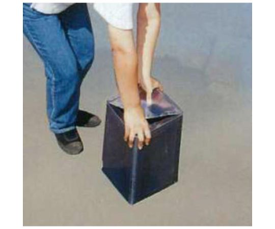 一斗缶のフタと底を対角線でカット、薄くたたんで産廃処理費用を削減できます。