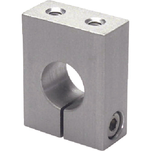 カタログ品番:PG524 特長:●パイプのスライドや転回がしやすい丸穴タイプの製品です。 仕様:●タイプ:2ヵ所ネジ穴加工●幅(mm):12●高さ(mm):32●長さ(mm):25●A(mm):25●d(mm):φ12●E(mm):15●F(mm):17●C(mm):12●P(mm):12●2-M:2-M4●締付ネジ:M4●2ヵ所のネジで部品の確かな固定 材質/仕上:●アルミ合金