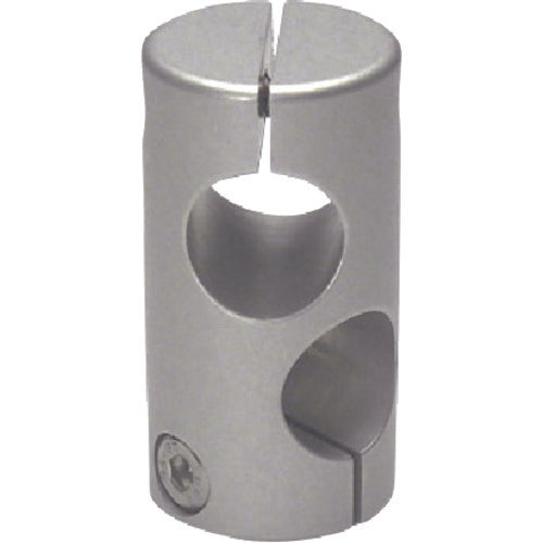 カタログ品番:PS203 特長:●パイプのスライドや転回がしやすい丸穴タイプの製品です。 仕様:●タイプ:クロス45°穴●幅(mm):13●高さ(mm):25●長さ(mm):13●d(mm):φ6●d2(mm):φ6●φD1:13●E(mm):9●P(mm):7●F(mm):9●締付ネジ:2-M3●ペアで使用、斜め取付けに 材質/仕上:●アルミ合金
