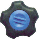 カタログ品番:FIT-K-M10-B-5P 特長:●コインなどで回すだけの簡単着脱です。●豊富なカラーバリエーションです。 仕様:●外径(mm):50●ノブ高さ(mm):22●キャップ色:青●色:黒/青●全長(mm):22●幅(mm):50●耐熱温度(℃):80℃ 材質/仕上:●ノブ:ASA樹脂●キャップ:ポリプロピレン(PP)