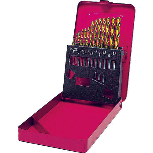 カタログ品番:GSDSET13 特長:●ノンコーティングと比較し、2〜3倍程の長寿命を実現するドリルセットです。 用途:●被削材:一般鋼、ステンレス鋼、鋳鉄、非鉄金属。 仕様:●セット内容(mm):1.5、2.0、2.5、3.0、3.2、3.5、4.0、4.5、4.8、5.0、5.5、6.0、6.5●セット入数(本):13●表面処理:TiNコーティング 材質/仕上:●高速度鋼(HSS)