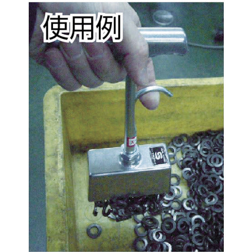 カタログ品番:SM1025 特長:●金属製(アルミ、ステンレス)のため堅牢で耐久性が高くなります。●コンパクトで使用し易く様々な用途で使用できます。●手元のレバー操作で吸着および脱着が簡単にできます。 用途:●散乱したクギや混入した鉄片の回収、整理に。 仕様:●吸着力(N):40●幅(mm):95●奥行(mm):38●高さ(mm):215.5 材質/仕上:●マグネット:フェライト磁石●本体:アルミ合金・スチール・ステンレス(SUS304)●吸着面:ステンレス(SUS304)
