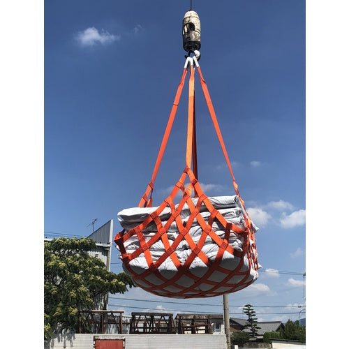 カタログ品番:MO25-20B 特長:●不定形な吊り荷や、崩れやすい吊り荷専用の特殊型ベルトスリングです。合成繊維製なので軽量で強く、吊り荷に優しい商品です。 用途:●土木、建設工事、港湾荷役。 仕様:●最大使用荷重(t):1●吊手長さ(mm):1500●幅(mm):2000●長さ(mm):2000●網目(mm):150●アイ部長さ(mm):210●吊手部:4点フックタイプ●使用温度100℃以下●使用温度:100℃以下 材質/仕上:●本体、吊手ベルト:ナイロン
