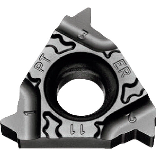 カタログ品番:16ER19BSPT-TF 特長:●外径ねじ切り加工用チップです。 用途:●外径ねじ切り加工用。 仕様:●適合ホルダ:KTNR-16型/KTNSR-16型●さらい刃付き 55°●TF 高品位金型仕様●被膜構成:MEGACOAT NANO●呈色:赤緑色 材質/仕上:●PVDコーティング