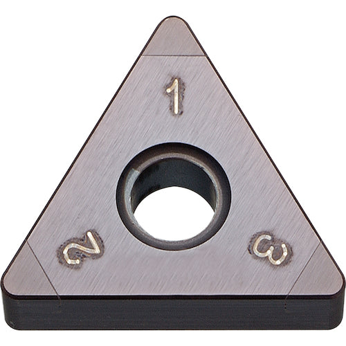 カタログ品番:TNGA160408S04030MEH 特長:●新開発コーティング+高靭性CBNにより、耐摩耗性と耐欠損性を両立しています。 用途:●旋削加工用。 仕様:●チップ形状:正三角形●厚さ(mm):4.76●D1(mm):3.81●断続