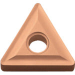 カタログ品番:TNMG160404 特長:●高い耐摩耗性と安定性を両立させ、高能率で長寿命な性能を発揮します。●連続加工と断続加工のどちらにも対応可能です。 用途:●旋削加工用。●被削材:ねずみ鋳鉄、ダクタイル鋳鉄。 仕様:●適合被削材:鋳鉄●チップ形状:三角形●コーナ半径(mm):0.4●厚さ(mm):4.76●全周ブレーカ:荒切削●M級●被膜構成:微細柱状TiCN+Al2O3+TiN●呈色:桃金 材質/仕上:●CVDコーティング
