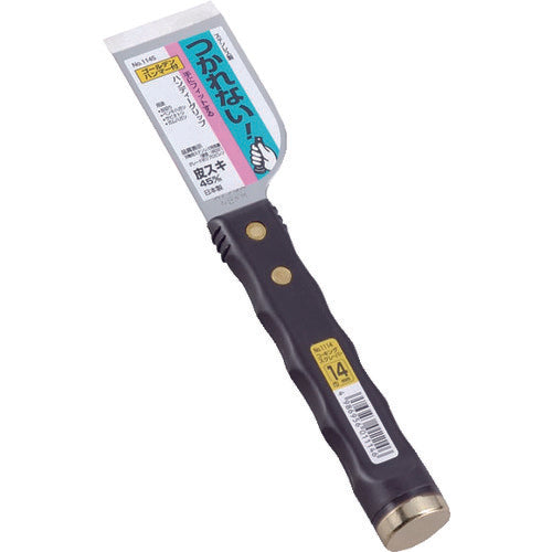 カタログ品番:1145 特長:●ハンマーの打撃力を確実に伝える頑強なハンマータイプ皮スキです。 用途:●缶切り、ペンキハガシ、サビオトシ、ガムハガシなどの作業に。●刃物用ステンレス鋼総焼入加工ですので、頑強で研ぎ直し使用可能です。 仕様:●全長(mm):222●刃幅(mm):45●刃長(mm):87●刃厚(mm):1.8●色:87●刃部用ステンレス鋼 材質/仕上:●・刃部材質:ステンレス 420J2 ・柄部材質:グレードポリプロピレン