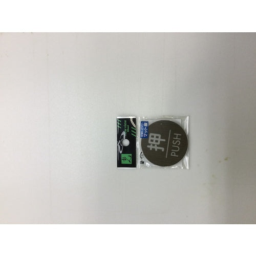 カタログ品番:WMS58-1 特長:●部屋名や入口の標示に適しています。●マット版なので光が反射しにくく、裏面印刷のため文字が消えないです。 用途:●部屋名や用途の標示に。 仕様:●表示内容:押 PUSH●取付仕様:粘着テープ●縦(mm):50●横(mm):φ50●厚さ(mm):2●色:ウォールナット●タイプ:丸型●取付方法:貼付タイプ(テープ付) 材質/仕上:●アクリルマット板