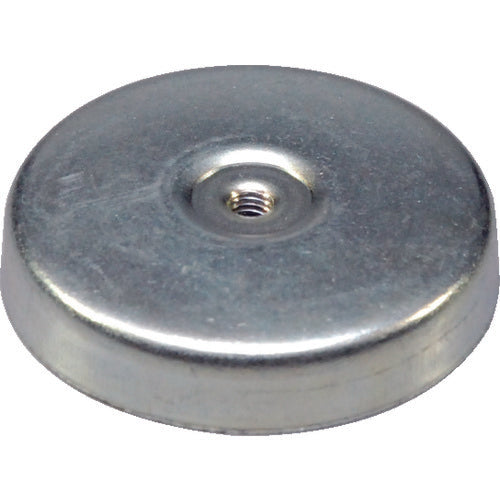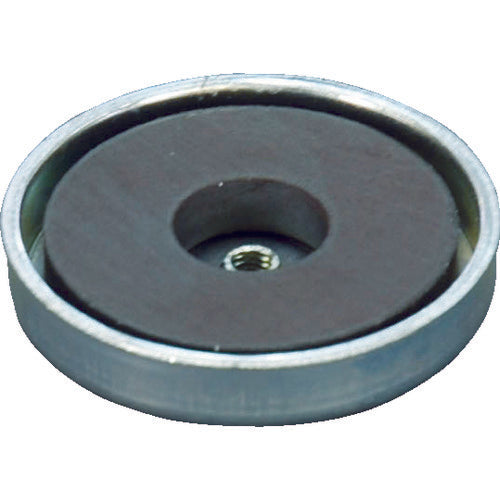 カタログ品番:MGY-44 特長:●キャップ付なので、磁石単体より約3倍吸着力が上がります。●保持力が高く減磁がありません。 用途:●吸着用。●機械部品に。 仕様:●表面磁束密度(T):0.12●吸着力(N):51●外径(mm):44●厚さ(mm):8●適合ねじ:M4●異方性●片面吸着●磁石外径×厚み×穴径:37×6×14mm●丸形 材質/仕上:●マグネット:フェライト磁石●キャップ:スチール 注意:●吸着力はあくまでも計算値です。使用状況により変わりますので参考データとしてご活用ください。