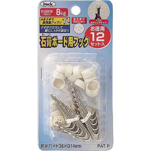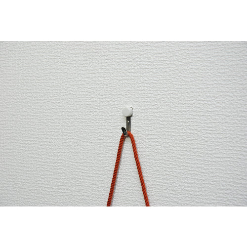 カタログ品番:KBFTM-1101 特長:●4本のクギがクロスして壁にしっかり固定されますので、重たい物も掛けられます。●抜き跡が目立ちません。 用途:●石膏ボードへの掲示用、ディスプレイ用のフックに。 仕様:●色:キャップ 白 フック ニッケルメッキ●縦(mm):36●横(mm):11●耐荷重(kg):8●フック材質:鉄●クギ固定式●フック幅:約6mm 材質/仕上:●スチール 注意:●天井面での使用はしないでください。●貴重品や、こわれやすいものは掛けないでください。