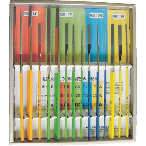 カタログ品番:JM-1 特長:●各種金型の仕上げ・修正・R取りなどに必要な形状の合金に適正な粒度のダイヤモンドを独自の電着技術でヤスリ合金に強固に配列させたグレードの高い商品です。●厳密な素材管理によって、高精度・高強固・シャープなエッジのヤスリを提供いたします。●ヤスリのグリップに商 用途:●各種金型の仕上げ・修正・R取り・各種刃物研削など、硬質脆性材料の研削に最適。●小径穴・面取りなどにも。 仕様:●粒度(#):140●形状:丸(φ)4●全長(mm):200●刃長(mm):70●柄の形状:丸 (φ4.6mm) 材質/仕上:●炭素工具鋼 注意:●力を入れずに使用してください。目づまり時は灯油などを使い、ブラシで洗ってください。