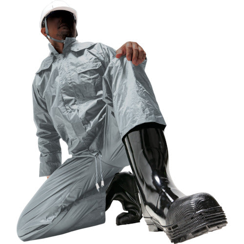 カタログ品番:NO1700-SIL-M 特長:●上着は、水の侵入を防ぐ前たて、手袋使用時に便利な2重袖、収納に便利な左胸ポケット、視認性の良い透明フード、背中に反射テープ付の多機能合羽です。●パンツは、裾部分のワンタッチボタンで、フィット感を調整可能です。●ウエスト部分はゴムで、脱ぎ履きしやすいです。●ネイビーのサイズは Mサイズ からゆったり大きい 7Lサイズ、シルバー・ブラックも5Lまでと幅広くサイズ展開しています。●蒸れやベタツキを防ぐサラサラ上下総裏メッシュを採用しています。●高い防水力と耐水圧10000mmH2Oです。●縫製部分の裏面には水滴の侵入を防ぐ防水テープ(シームテープ加工)を貼っています。●上下セットです。 用途:●一般作業、軽作業、高所作業、農作業、通勤通学に。 仕様:●色:シルバー●サイズ:M●身長(cm):160〜165●胸囲(cm):84〜92●ウエスト(cm):74〜84●股下(cm):63●耐水圧:10000mm以上 材質/仕上:●表地:ポリエステル●裏地:塩化ビニール(PVCラミネート)