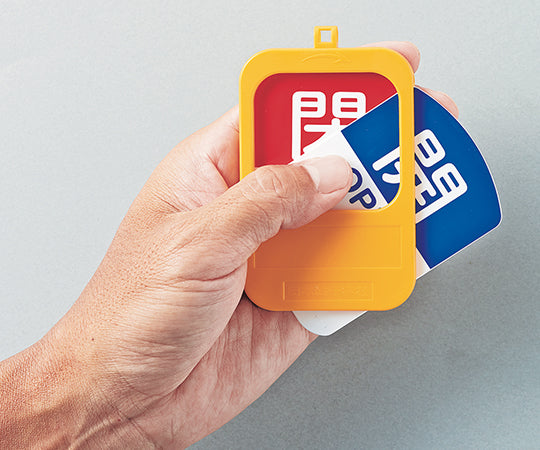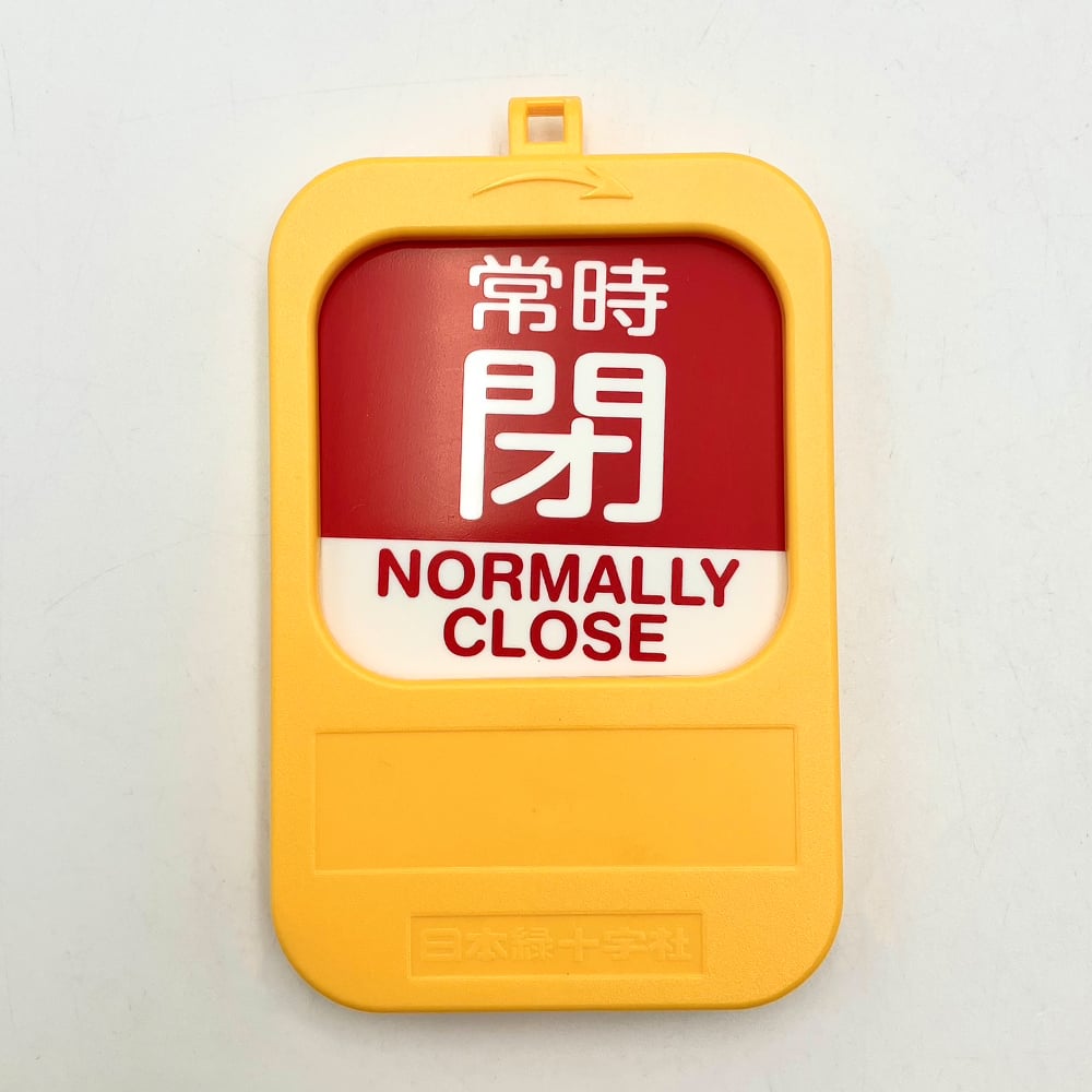 札を回転させるだけで表裏両面の表示内容が同時に切り替わる、機能性に優れたバルブ開閉表示札です。表示内容:常時開(NORMALLY OPEN)⇔常時閉(NORMALLY CLOSE)