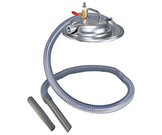 ペール缶に乗せて圧縮エアーを入れるだけで掃除機に早変わりします。 コンパクトな設計で持ち運びが便利、メンテナンスフリーです。 オイルミストが発生せず、オイルやヘドロや砂でも吸い込むことができます。型番:V500 材質:本体/アルミ鋳物、吸い込みホース/塩化ビニル樹脂(耐油性) 付属品:ノズル(丸)・(角)×各1本 ※ペール缶は別売です。 ホース(耐油):φ32×2m ノズル(アルミ):φ32×30cm 消費量:450L/min 真空度:2,600mm/H2O 吸入量:1.7m3/min(空気)