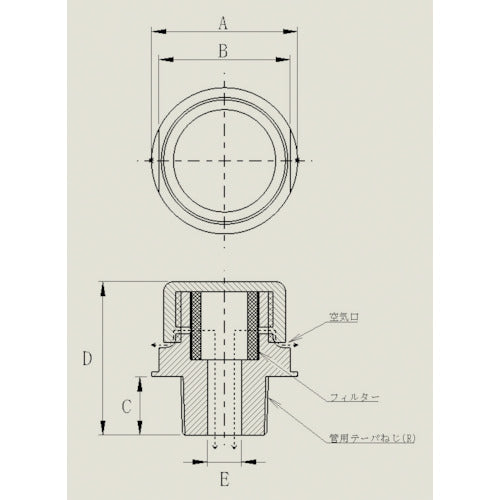 カタログ品番:20501000 特長:●金属製のため、強度・耐薬品性に優れます。●取付面から低くした設計のため、コンパクトで他部品との干渉を防げることができます。 仕様:●外径(mm):30●厚さ(mm):32●取付ねじ径:R3/8●ねじ長さ(mm):12●A(mm):30●B(mm):27●C(mm):12●D(mm):32●E(mm):7●取付ねじ径:管用テーパねじR3/8 材質/仕上:●真鍮、ニッケルメッキ