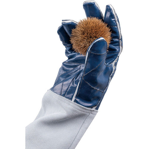 カタログ品番:2440 特長:●耐突刺特殊シートと豚本皮のW構造(手のひら部分)で手から肘付近までをガード 用途:●とげのある木や花の剪定 仕様:●色:ブルー●サイズ:ブルー●全長(cm):ブルー●手のひら周り(cm):LL●中指長さ(cm):LL●厚さ(mm):LL●袖口タイプ:43.5●当て:43.5●縫い方:43.5●タイプ:25 材質/仕上:●手袋本体:豚皮/ニトリルシート