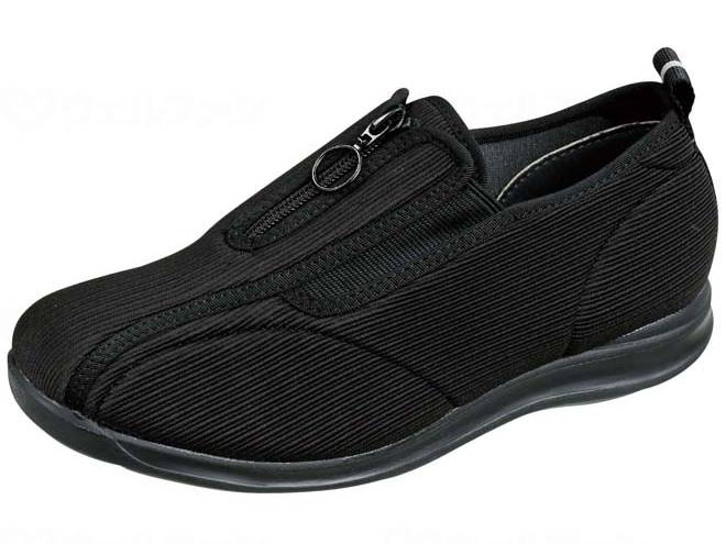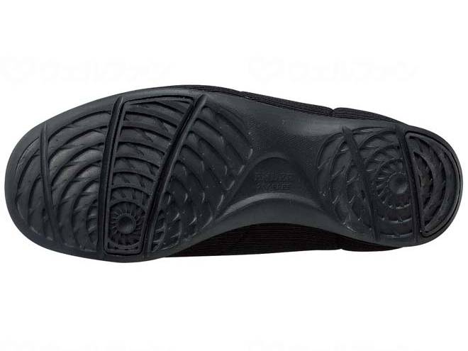 足あたりが柔らかいストレッチ素材を使用。かかとは踏んでもすぐ戻るカウンター仕様です。