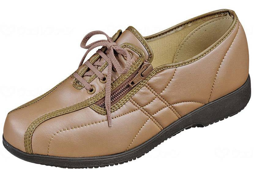 メーカー品番:「KE326」 サイズ・重量 重量(片足23.5cm)136g コメント ファスナー付きの紐靴仕様 足あたりが柔らかいストレッチ素材を使用。かかとは踏んでもすぐ戻るカウンター仕様です。 軽くて屈曲性が良い靴底で、足あたりが柔らかいインソールを使用した快適設計です。 かかとには夜間歩行時の安全性を高める反射材付きです。 材質・原材料 ○素材:ストレッチ合成皮革 ○ソール:ラバー配合EVA 規格詳細 23.0cm ○ゆったり4E ○軽量設計 ○ストレッチ ○ソフトインナーソール ○屈曲性のよいソール設計 ○かかとを踏んでもすぐに戻る設計 ○ファスナー付き ○反射材使用 後継:298027
