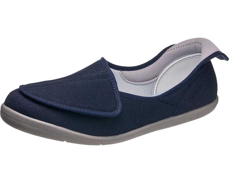 ●サイズ/SS:21.0~21.5cm、S:22.0~22.5cm、M:23.0~23.5cm、L:24.0~24.5cm、LL:25.0~25.5cm、ワイズ:3E ●重さ/170g(片足Mサイズ) ●材質/表材:綿、底材:合成底 ●生産国/日本 ●室内用 ・もっと元気になれる靴「快歩主義」。 ・足にやさしい5つのポイント:体重移動をコントロールして歩行をサポート、水に浮くほど軽い、つまずきにくく安心、脱ぎ履きが簡単、安心・安全な国内生産。 ・屋内履き登場。中敷き取り外し可能。 ・つまずきにくく、すべりにくい。 ・足入れスムーズ、履きやすい。 ・軽くてやわらか、歩きやすい。