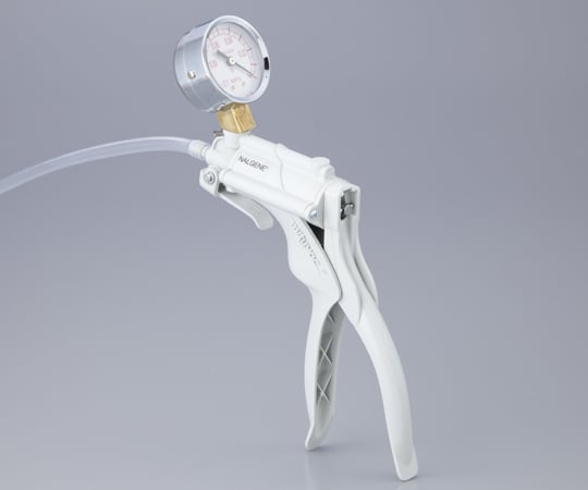 手軽な研究用真空源として使用できます。 Pa表示の真空ゲージ付きです。 長さ60cm、内径1/4″のナルゲン透明ビニールチューブ付きです。 チューブを外さずに真空を開放できる便利なリリースバルブ付きです。圧力(kPa):21 吸引容量:15cc/1ストローク 材質:PVC(塩化ビニル樹脂) 付属品:チューブ(60cm)×1本 ※ポンプに液体が入らないよう注意してください。※揮発性溶剤蒸気・酸及び溶解性のある蒸気の吸引は避けてください。 RoHS2 (EU)2015/863 対応 [RoHSについて]