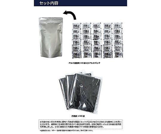 1回に凝固剤を1個ご使用下さい。セット内容:凝固剤入りアルミパック(約6g/個)30個入りアルミパック×1袋、汚物袋×30袋