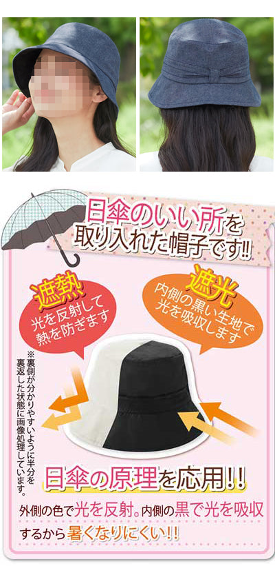・日傘の原理を応用!!外側の色で光を反射(遮熱)・内側の黒で光を吸収する(遮光)から暑くなりにくい!!