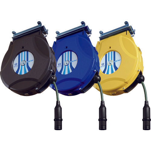 カタログ品番:HAP-210JT-BG 特長:●火花に強いです。●柔らかく、巻きぐせがつきにくいです。●プロユース仕様です。●簡単にホース交換ができます。●天井、壁取付可能です。●鉄カプラ(日東工器製)付きです。 用途:●自動車整備工場、各種修理工場、各生産工場など。●火花が発生する工場全般。 仕様:●ホース内径×外径(mm):6.4×10●ホース全長(m):10●取付一次側:R1/4●取付二次側:Rc1/4●幅(mm):300●奥行(mm):115●高さ(mm):335●色:黒●制限圧力(MPa):1.4●1次側ホース接続口:G1/4●ホース先端:Rc1/4●使用圧力:1.4MPa(14kgf/[[CM2]])●ラチェット式ストッパー●自動巻取式●ガードプレート付ホース出口 材質/仕上:●ホース:特殊ポリウレタン(ブレード入り) セット内容/付属品:●ハンガー受け(取付プレート)、固定用ボルトナット、ビス●一次側ホースASSY●鉄カプラ