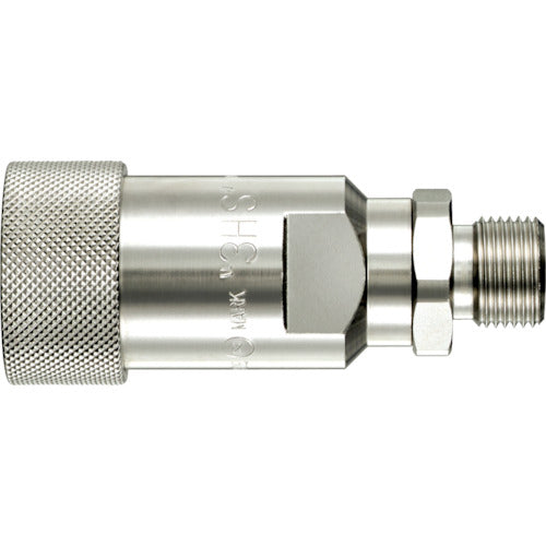 カタログ品番:2HS-GS STEEL NBR 特長:●本体材質には振動・衝撃に強い特殊鋼を採用してます。●圧力損失も少なく油圧機器に対応します。●本体材質は強度に優れた特殊鋼を採用、熱処理を行い衝撃圧力に対応しています。●ソケット・プラグともに自動開閉バルブを備え、分離時の流体の流出を防止します。●めねじタイプに加えて、おねじタイプ(テーパねじ・平行ねじ おすシート・平行ねじ めすシート)を品揃え。特におねじタイプは、油圧装置などへの取り付け作業の効率化が図れます。●平行おねじタイプはメタルシール・Oリングシールのいずれにも対応できます。(Oリングは市販品使用)●圧力変動の激しいダイカストマシン用途には、HSP−DCカプラを別途ご用意しています。●おねじタイプは、めねじタイプにおすの変換ニップル(市販品)を取り付けた時の全長と比べて、短くなります。●おねじ取付用ソケットの2HS型〜8HS型(66HS型除く)には、分離防止機構(シングルロック)付きのPLタイプをご用意しています。 仕様:●耐圧力(MPa):31.0●使用流体:作動油●使用温度範囲(℃):-20〜80●最高使用圧力(MPa):20.6●相手側取付サイズ:G1/4●相手側取付ねじサイズ:G 1/4●適用Oリング:P-11●両路開閉型●バルブ構造:両路開閉型●本体材質には振動・衝撃に強い特殊鋼を採用。●おねじ・めねじタイプを揃え、圧力損失も少なく油圧機器に適応。 材質/仕上:●本体:特殊鋼(ニッケルメッキ)●シールゴム:ニトリルゴム(NBR)